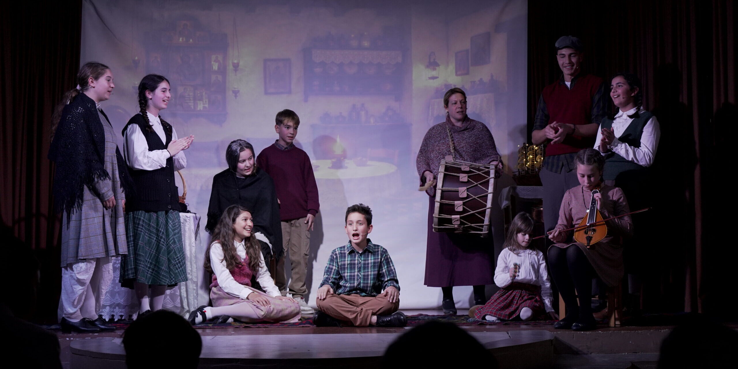 Στο δεύτερο μέρος παρακολουθήσαμε την θεατρική παράσταση Γυμνασίου – Λυκείου, Φοιτητών και Γονέων με θέμα την εξέλιξη του οικογενειακού εορτασμού των Χριστουγέννων στο πέρασμα των δεκαετιών.