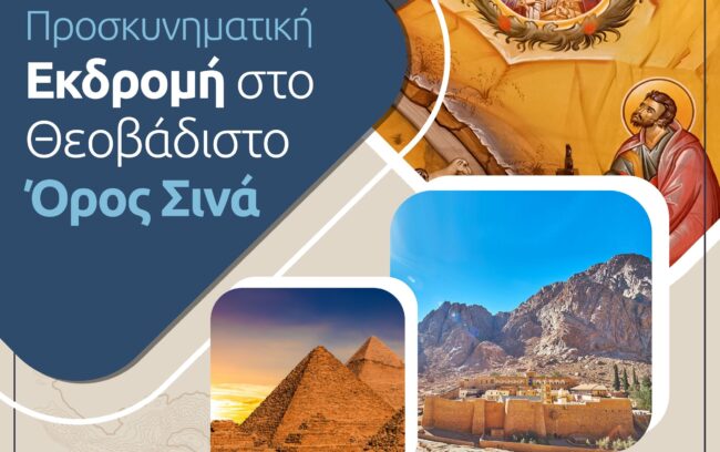 Η Ενορία μας διοργανώνει Προσκύνημα στο Θεοβάδιστο Όρος Σινά από 16-20 Νοεμβρίου [Πέμπτη 16 απόγευμα έως Δευτέρα 20 ξημερώματα].Το πρόγραμμα…